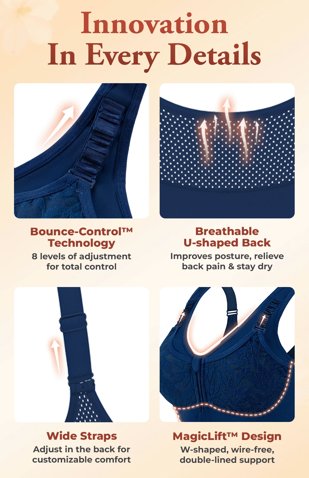 RosyLift - Ultimate Lifting Bounce Control Front Zipper Bra